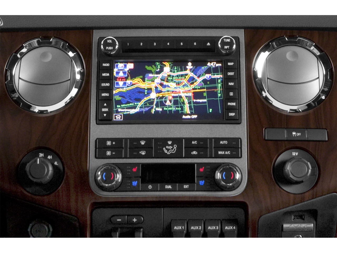 - SYNC w/MyFord Touch & SYNC Services -inc: 911 assist, USB port, AppLink, 8" LCD color touch-screen in center stack, IP mounted inverter (110v/150w) upper closable media hub w/2 USB ports, SD card reader, audio/video input jacks, 12 volt powerpoint, 5-way steering wheel control switch and 4.2" LCD productivity screen w/menus for gauge setup, trip computer, fuel economy and towing/off-road applications, SYNC Services include traffic, turn-by-turn directions, business search, send to SYNC from MapQuest, news, sports, weather and horoscopes, Note: SYNC Services receive a complimentary 1 year prepaid subscription