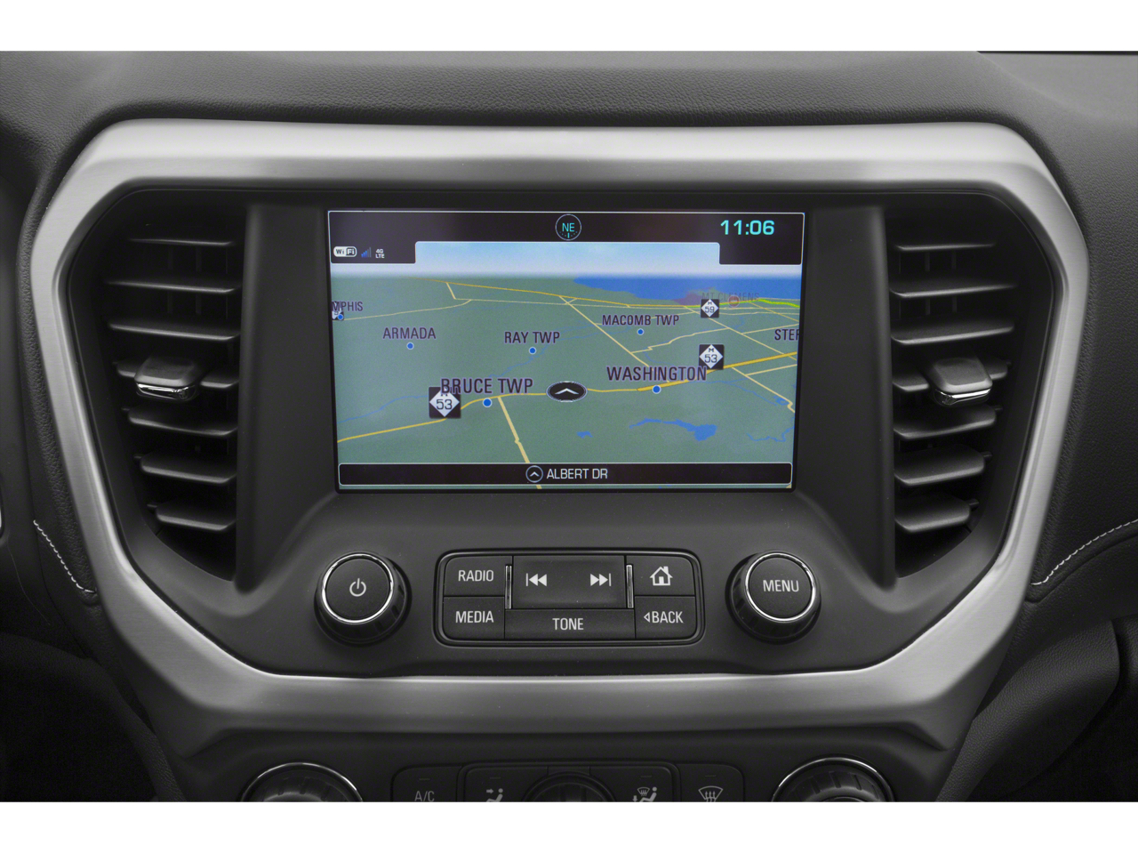 - Audio system, 8" diagonal Color Touch Screen Navigation with GMC Infotainment System, AM/FM/SiriusXM USB ports, auxiliary jack, Bluetooth streaming audio for music and most phones, advanced phone integration featuring Apple CarPlay, Android Auto and voice-activated technology for radio and phone
