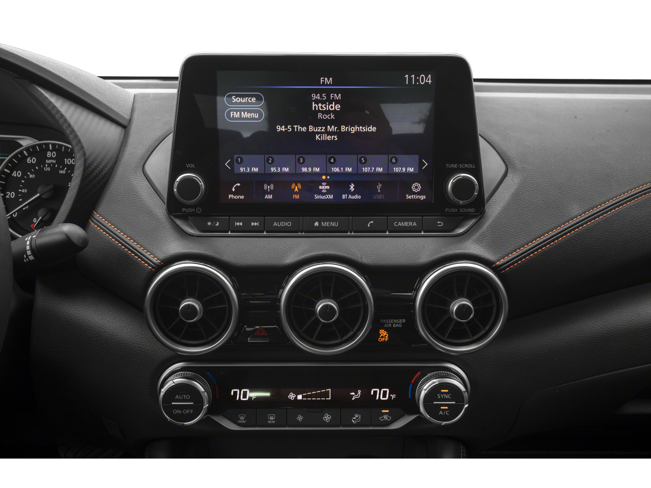 - Radio: AM/FM w/RDS/MP3/Aux-In -inc: 8" color display w/multi-touch control, streaming audio via Bluetooth, Bluetooth hands-free phone system, hands-free text messaging assistant, Siri eyes-free, Google Assistant voice recognition, NissanConnect featuring Apple CarPlay and Android Auto, 1 additional front USB (type C) and 1 charge-only USB (type A) center console and SiriusXM radio w/advanced audio features
