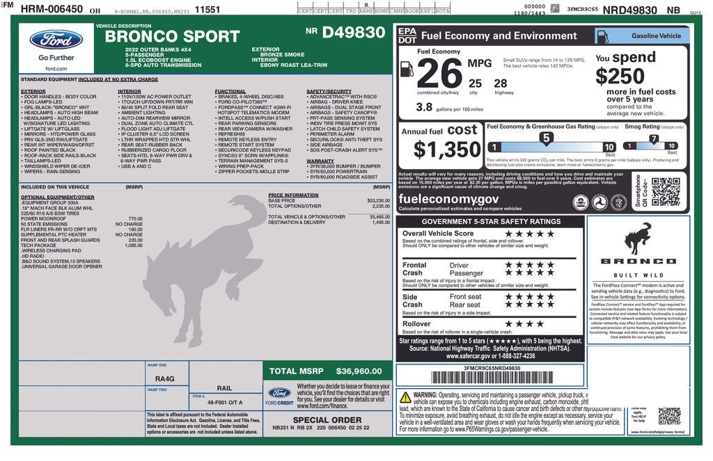 - Vehicle Name: Ford Bronco Sport