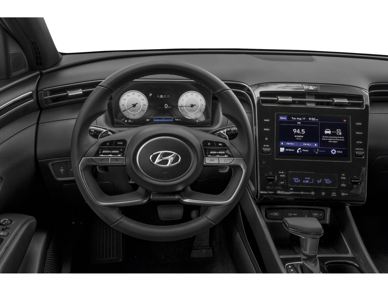 - Radio: AM/FM Audio System -inc: low-cost display audio, 8" color touchscreen, 6 speakers, SiriusXM satellite radio w/3-month trial subscription, HD Radio, Blue Link connected car system, Bluetooth, wireless Apple CarPlay and Android Auto and dual front high-power USB outlets