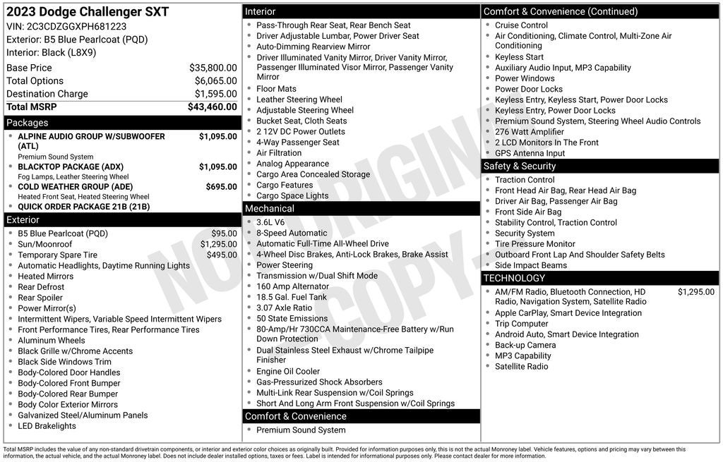 2023 Dodge Challenger SXT AWD Odometer is 15356 miles below market average! ***Clean Carfax***, ***One Owner***, ***Navigation***, ***Heated Steering Wheel***, ***Heated Front Seats***, ***Rear View Camera***, ***Bluetooth®***, ***Sirius XM Radio***, ***Apple Carplay/ Android Auto***, ***Houndstooth Cloth Sport Seat ***, ***9 Alpine Speakers with Subwoofer ***.