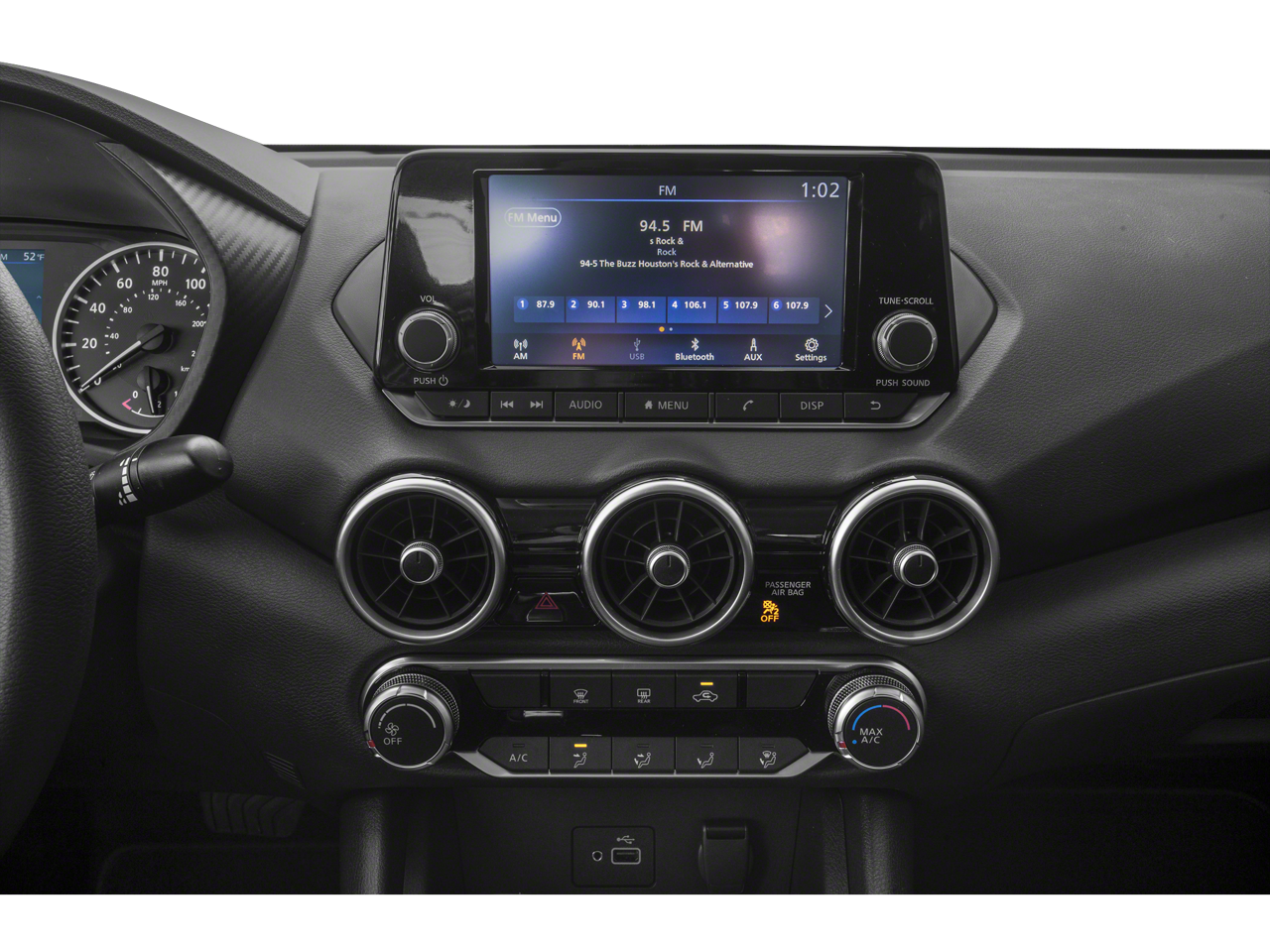 • Radio: AM/FM w/RDS/MP3/Aux-In -inc: 6 speakers plus 2 tweeters in A-pillar, 8" color display w/multi-touch control, streaming audio via Bluetooth, Bluetooth hands-free phone system, hands-free text messaging assistant, Siri eyes free, Google Assistant voice recognition w/Apple CarPlay and Android Auto, NissanConnect, (1) front USB connection port (type A), (1) additional front USB (type C) and (1) charge-only USB (type A) center console and SiriusXM radio w/advanced audio features