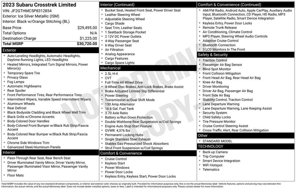 - Vehicle Name: Subaru Crosstrek