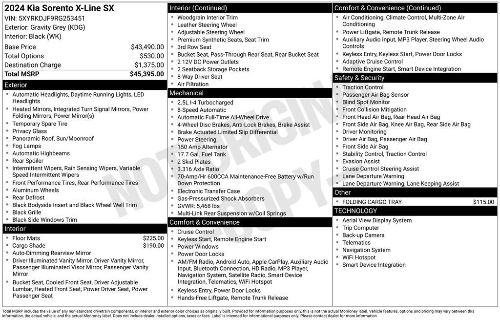 - Vehicle Name: Kia Sorento