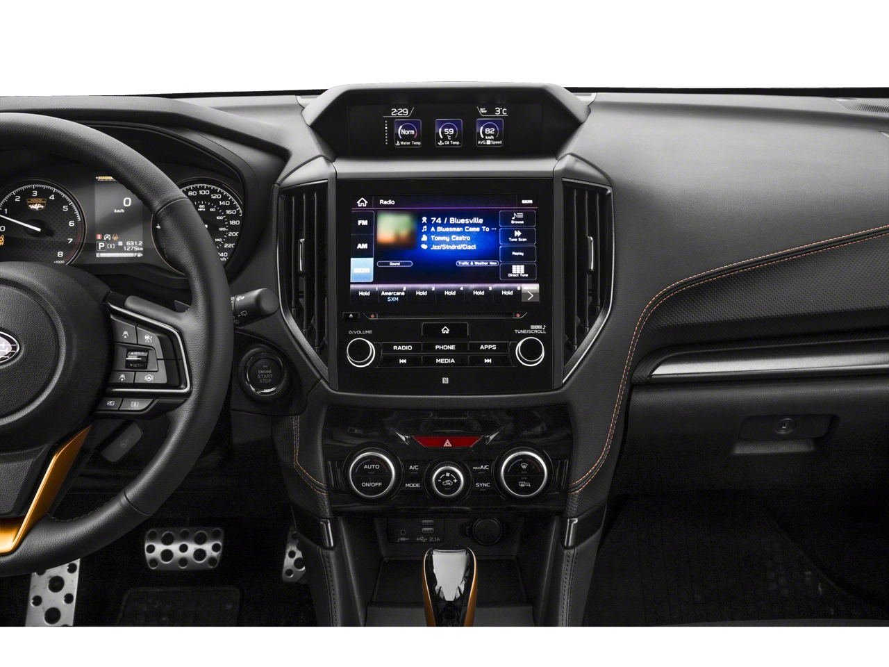 - Radio: Subaru STARLINK 8.0" Multimedia Plus System -inc: AM/FM stereo HD Radio, multi-touch gesture high resolution display screen, voice activated controls, Bluetooth audio streaming, hands-free phone connectivity and hands-free SMS text messaging connectivity (refer to subaru.com for cell phone compatibility), Near Field Communication (NFC), iPod control capability, SiriusXM All Access radio and SiriusXM Travel Link (4 months free trial/subscription required after), smartphone integration for AHA, Android Auto, Apple CarPlay, Pandora and STARLINK cloud applications (refer to subaru.com for app availability), USB and Over The Air (OTA) audio system update, steering wheel controls for audio and Bluetooth, 6 speakers, 3.5mm auxiliary input jack and dual USB A input/charge ports